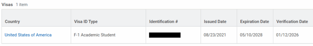 The Workday Visas table (under Personal > IDs) indicates a FN’s WashU work authorization information. The I-9 team adds this data for all wage earners (hourly or salary). FNIS Support adds this data for all stipend-only recipients.